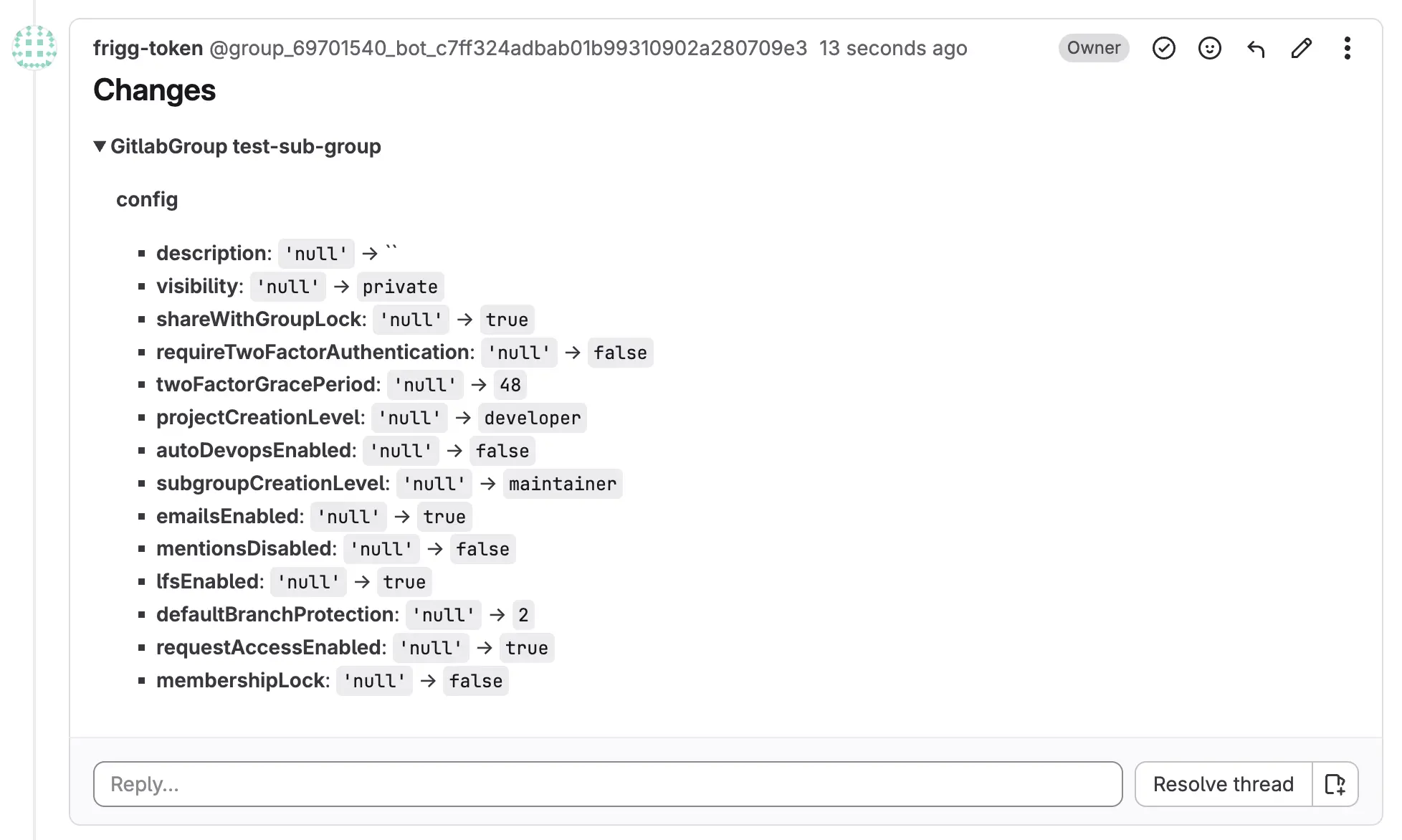- Create a merge request with the new group resource